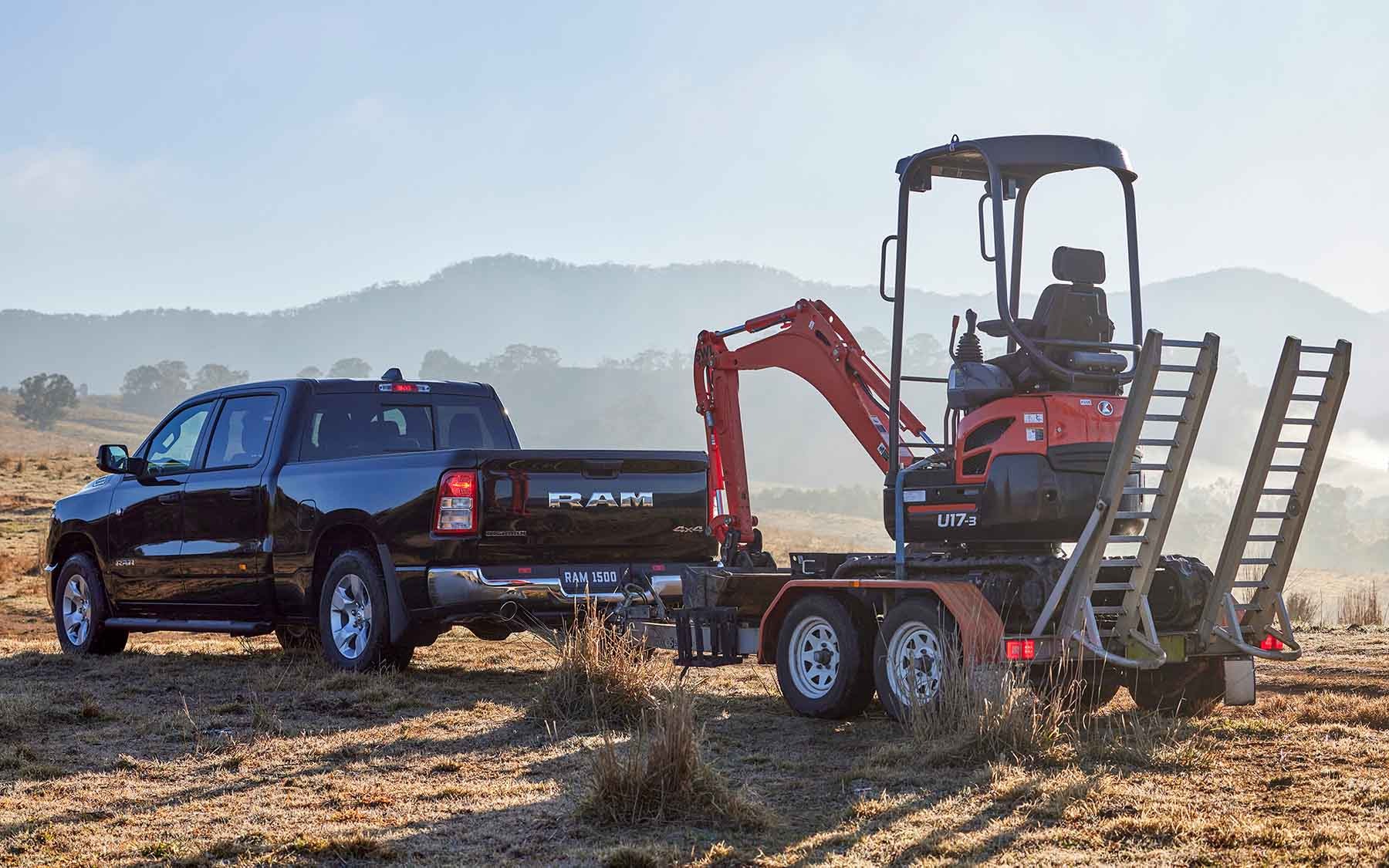 Available in either 5'7" or 6'4" cargo tub versions, the Ram 1500 Big Horn® features a bedliner and load tray illumination as standard, along with a central locking tailgate equipped with a fully damped tailgate release. The 6'4" cargo tub variant boasts the largest tub size across the 1500 range, delivering more load-carrying capacity than before possible across its DT stable mates. The cargo tub width will take a full-size pallet with ease and you’ll still have space left over for all kinds of gear, regardless of which tub length you opt for. This no-nonsense practicality continues with multiple tie-down points, a deployable bed step and up to 878kg payload on the 6'4" tub variant, making it perfect for the job site during the week and out and about for weekend adventures.
