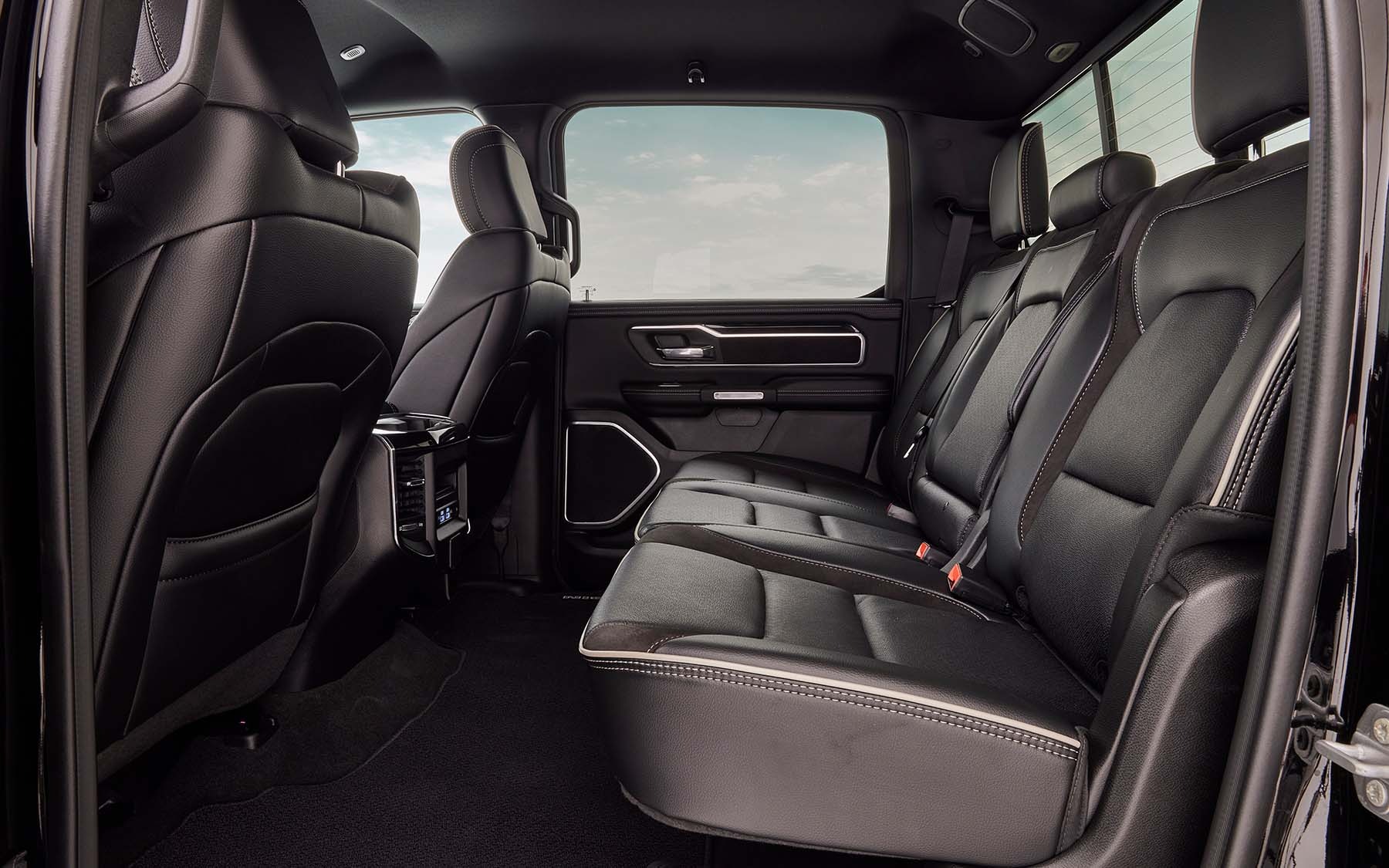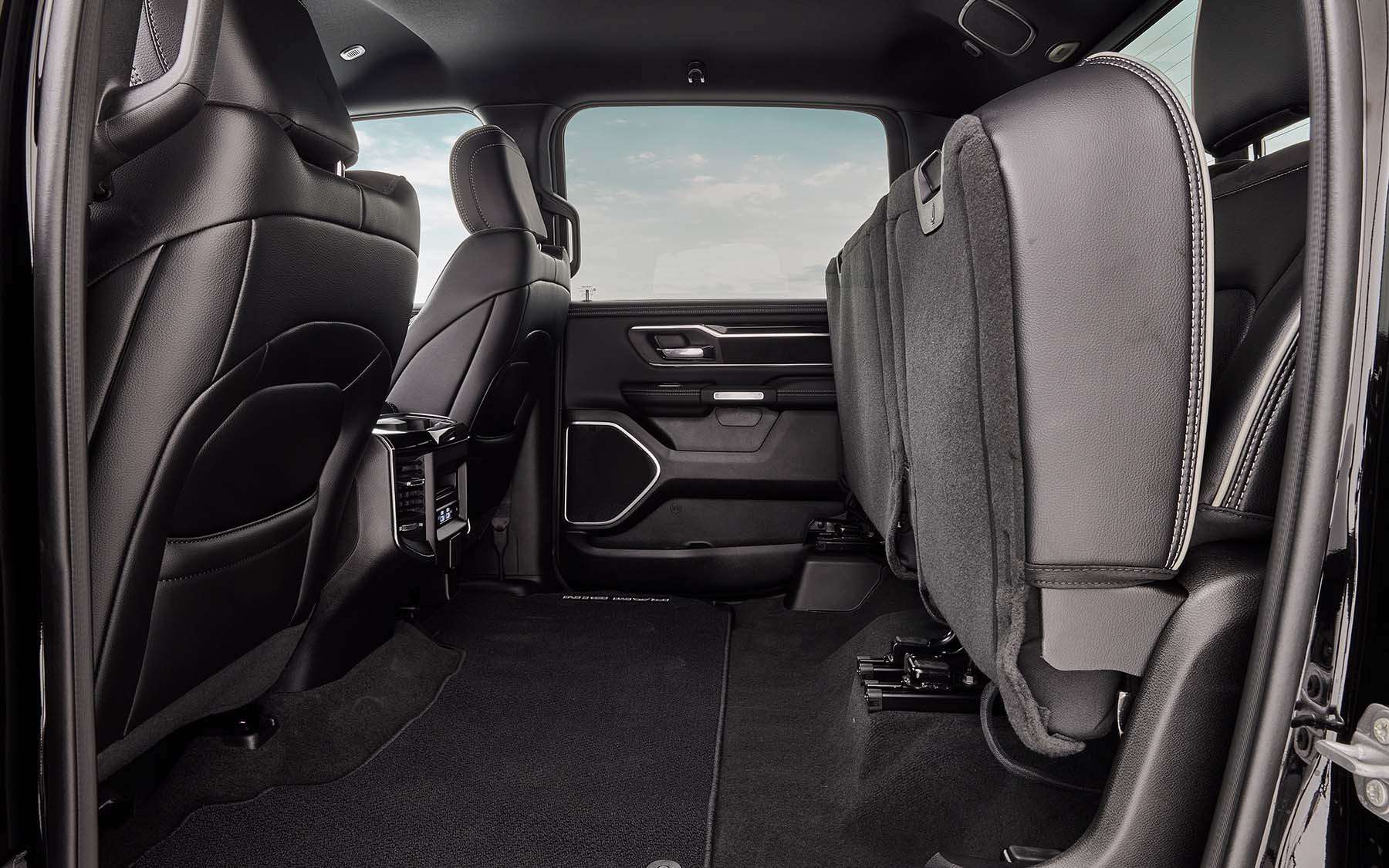 Boasting the largest cab in its class, the increased overall cab length allows for larger front and rear doors and overall enhanced passenger comfort. Once inside the premium cabin, you’ll appreciate the thoughtful interior styling and plush partial leather-trimmed seats throughout. Driver and front passenger seats enjoy a captain’s chair experience with their smart-fold centre armrest, 8-way power-adjustable seats with lumbar adjustment, and 3 levels of heating and ventilation settings. Rear passengers in the two outer seat positions also benefit from heating and class-exclusive manual rear-seat recline, something you won’t find in your average pickup truck.